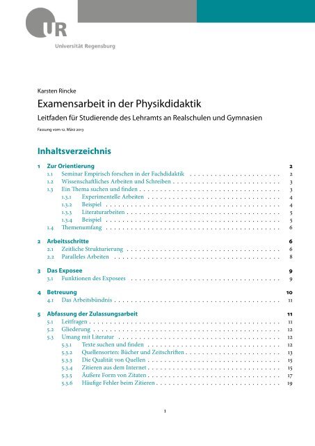 Examensarbeit In Der Physikdidaktik Physik Universitat Regensburg